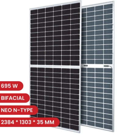 Puissance : 695W (monofacial) / jusqu’à +25% en production bifaciale